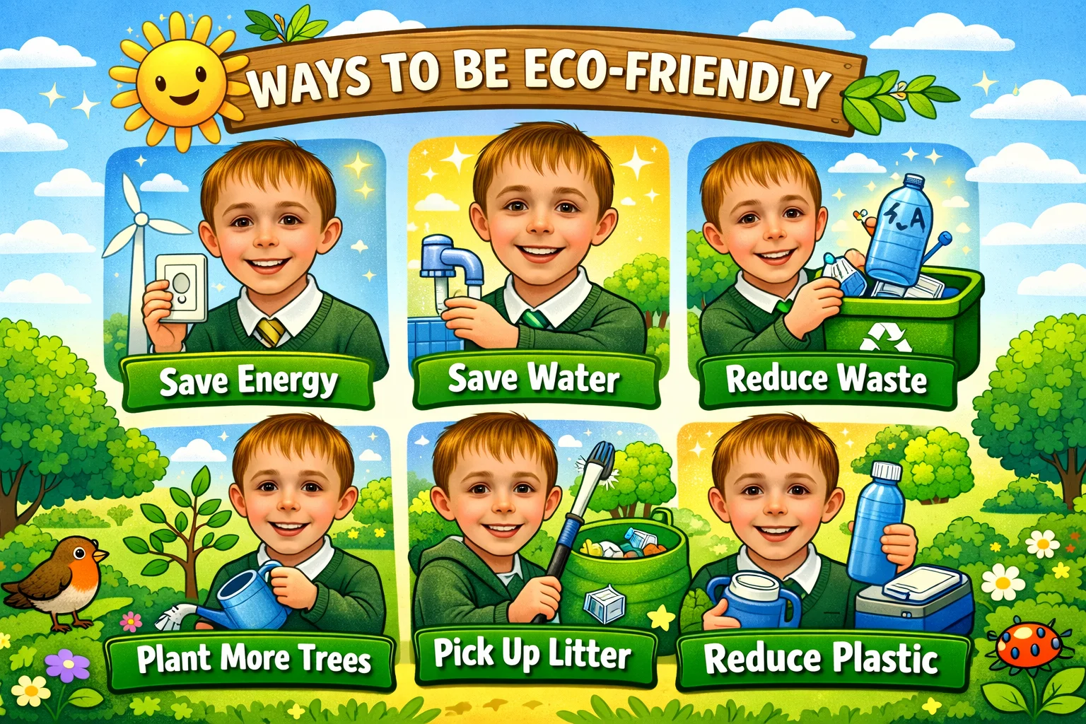 Being eco-friendly means taking care of our planet. Even small actions can make a big difference!